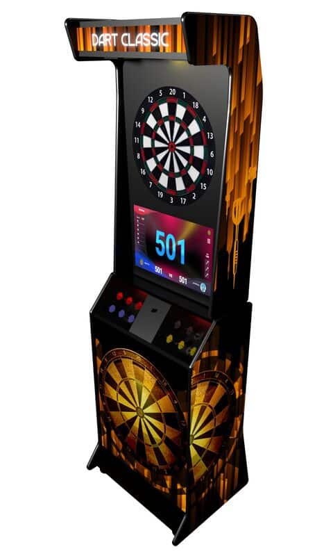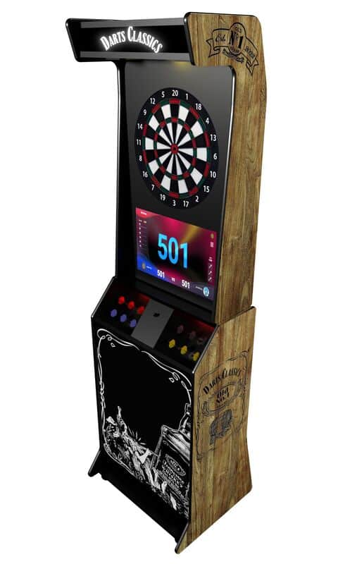 Cette borne de fléchettes combine la tradition de la fabrication artisanale française avec la technologie moderne des cibles connectées. Personnalisable et robuste, elle offre une expérience de jeu immersive grâce à son écran tactile intégré et son système sonore stéréo.